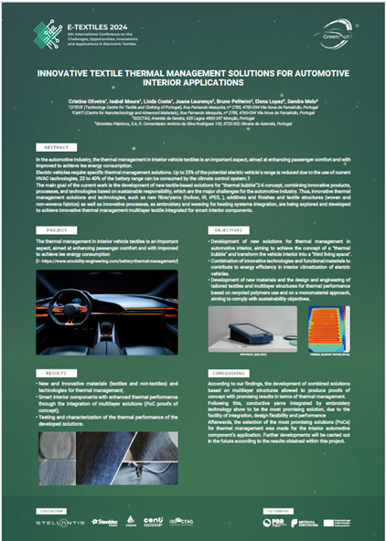 Foi feita a apresentação dos resultados do projeto, onde incluem o desenvolvimento de complexos laminados de base têxtil com sistema de aquecimento integrado, para o interior automóvel.