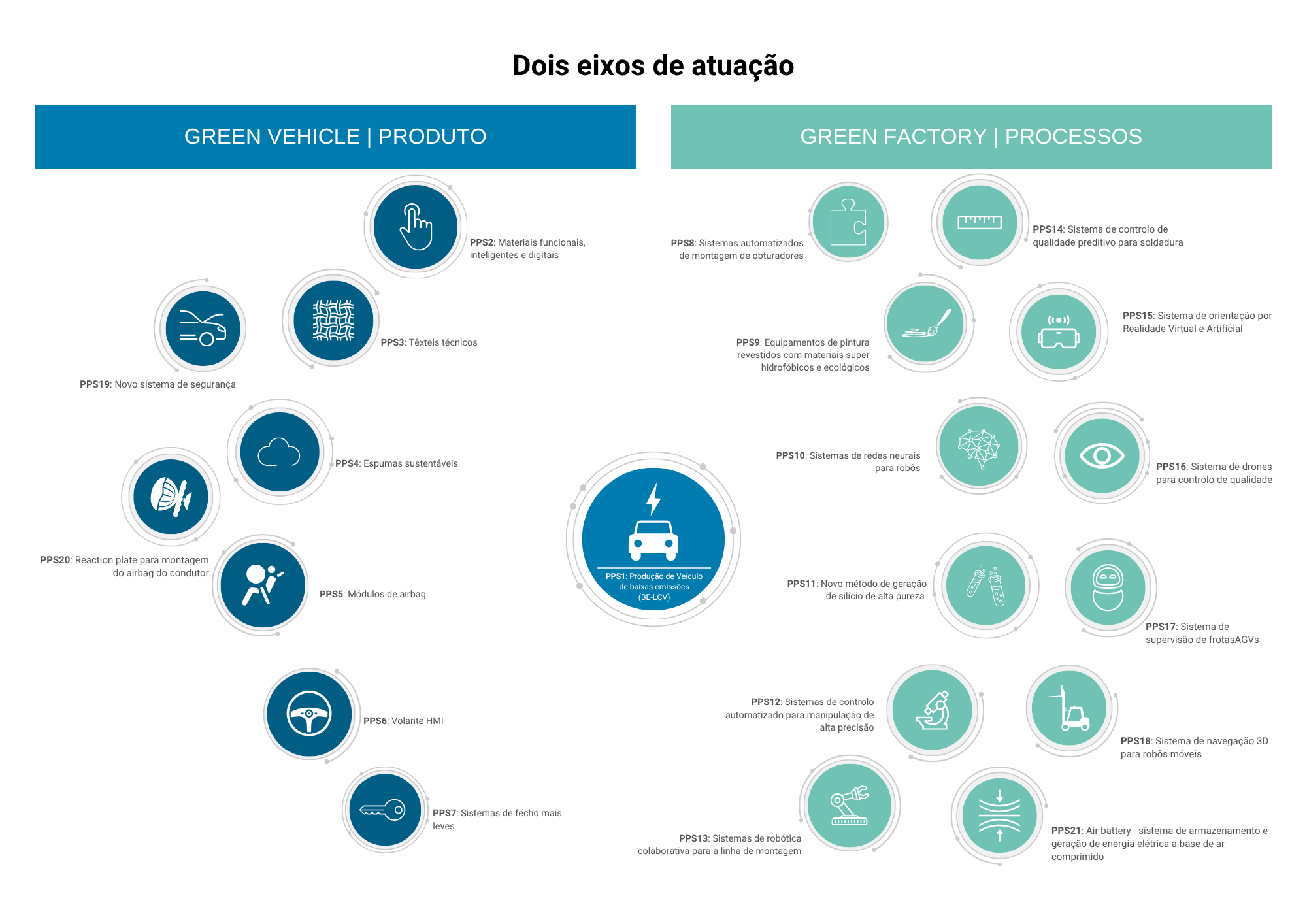 Para alcançar este objetivo serão desenvolvidos 21 produtos e processos inovadores, digitais e sustentáveis, associados ao “Green Vehicle” e “Green Factory”.